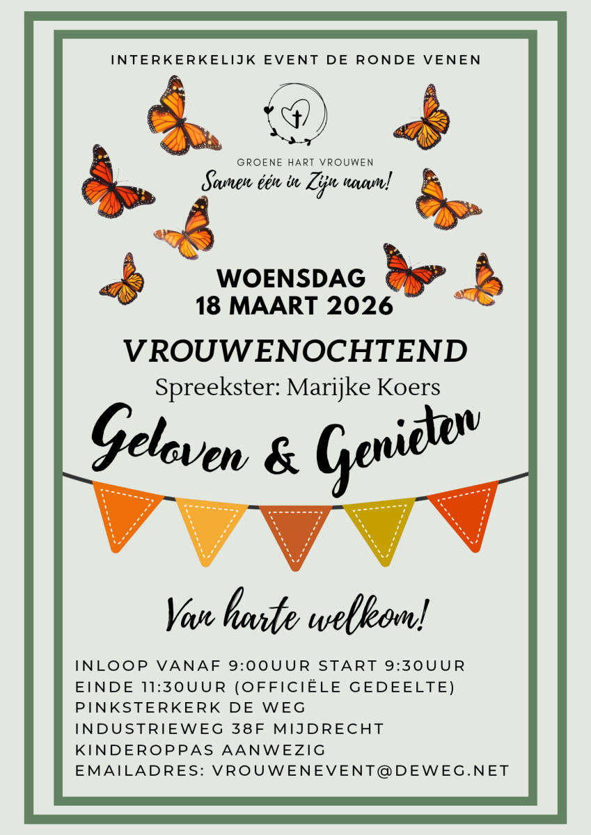 Woensdag 18 maart 2026 is er weer een interkerkelijke vrouwenochtend, georganiseerd door de Groene Hart vrouwen.
