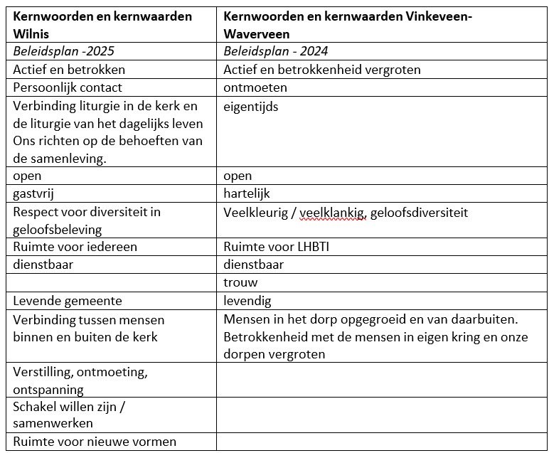 In de PG Vinkeveen-Waverveen is al langer de wens om door samenwerking een duurzaam vitale gemeente te zijn. Met het moderamen van de protestantse gemeenten in Wilnis en Mijdrecht is specifiek overleg gestart in achterliggende jaren. Dit o.a. in het licht op mogelijke samenwerking in geval zelfstandig voortbestaan niet meer haalbaar is (beleidsplan 2020 en gesprekken met de gemeenteleden over de toekomst in vacante periode).